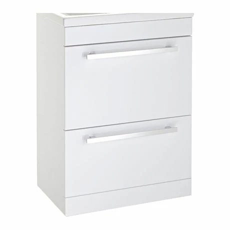 A replacement basin unit for the Nuie 600mm floor standing vanity unit. Comes in a Gloss White finish and features one drop down door and one drawer.