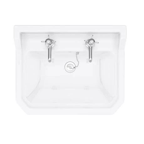 Inspired by Victorian and Edwardian design, the Nuie Carlton Traditional Basin and Pedestal will bring a distinctly period style to your bathroom. It’s crafted with classic bevelled edging and an outer rim design that perfectly frames traditional taps while providing ample space for your soaps and toothbrushes, too. This two-tap bathroom sink is made from hardwearing vitreous china and boasts a smooth, lustrous surface complete with a durable gloss white finish that resists stains.