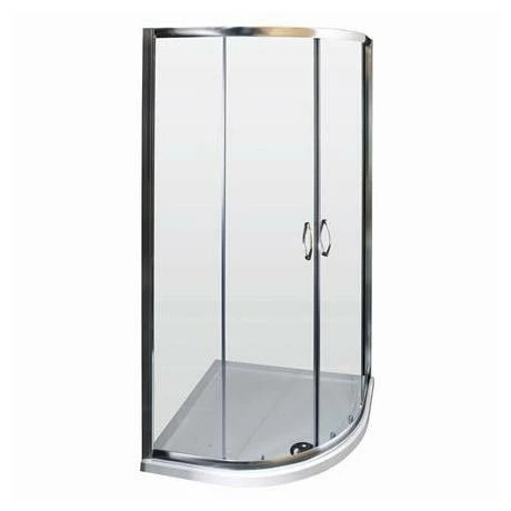A 800 x 800mm quadrant shower enclosure featuring 5mm toughened safety glass. The frame has a satin chrome finish, and has sliding doors for easy access.