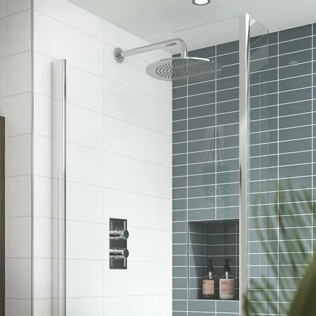 The Quest rectangular concealed thermostatic twin shower valve from Nuie offers a simple shower solution with a neat finish and is suitable for use with all water systems.